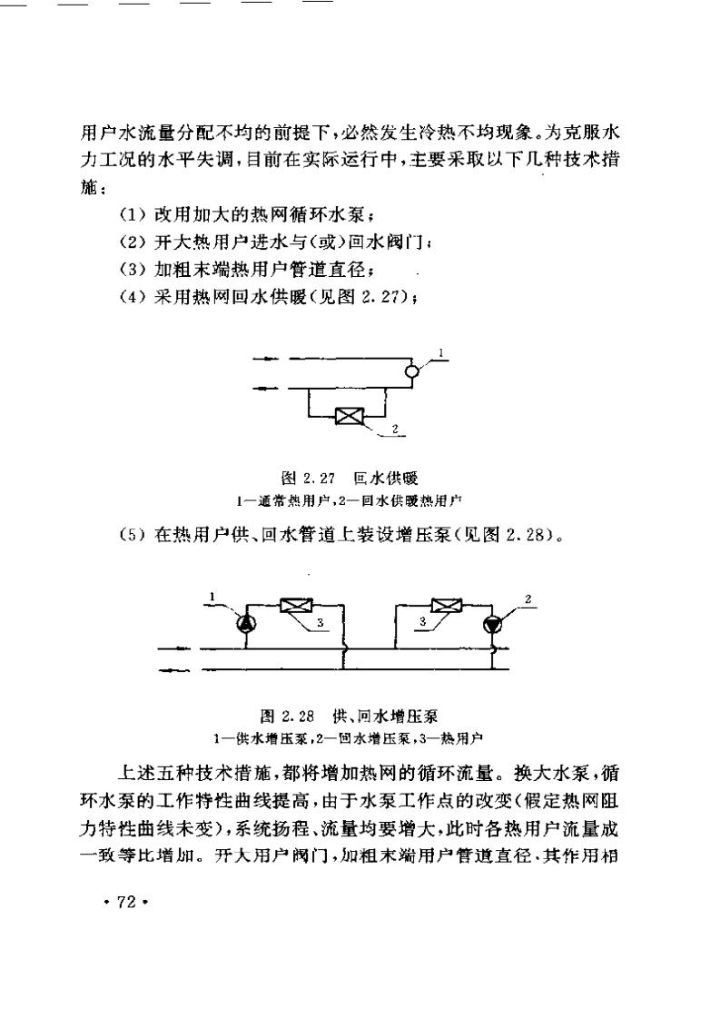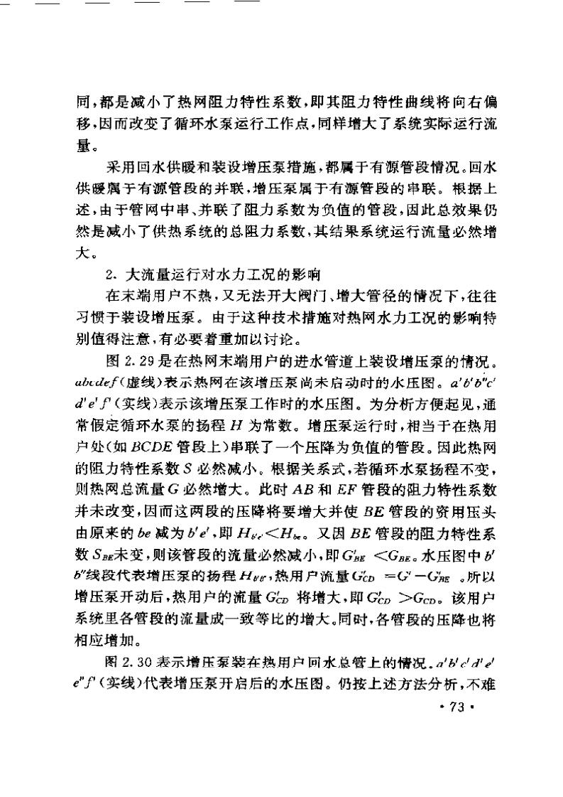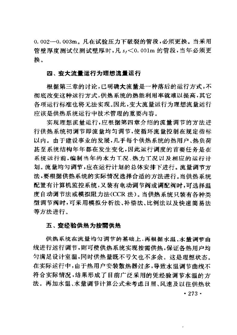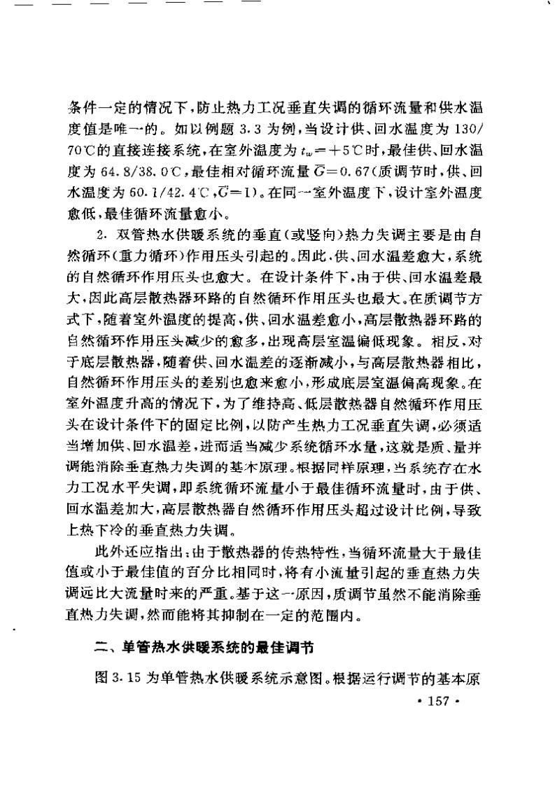 本书内容包括:供热工程基础供热系统水力工况、热力工况、流量调节协调运行和计算机自动监控等六章。书中详尽分析了供热系统水力工况热力工况之间的关系以及工况失调的原因。对大流量运行的利弊、同程系统的稳定性定压过程恒压点位置确定、多热源的优化运行以及能效分析进行了深入探讨,观点新颖。书中介绍的流量调节方法,既有多种调节方法的比较,又有重点调节方法的详细说明体现了理论性和实用性的结合。本书是供热工程管理运行人员的良师益友,也可作为供热空调专业本科生、研究生以及工程设计人员的参考书。